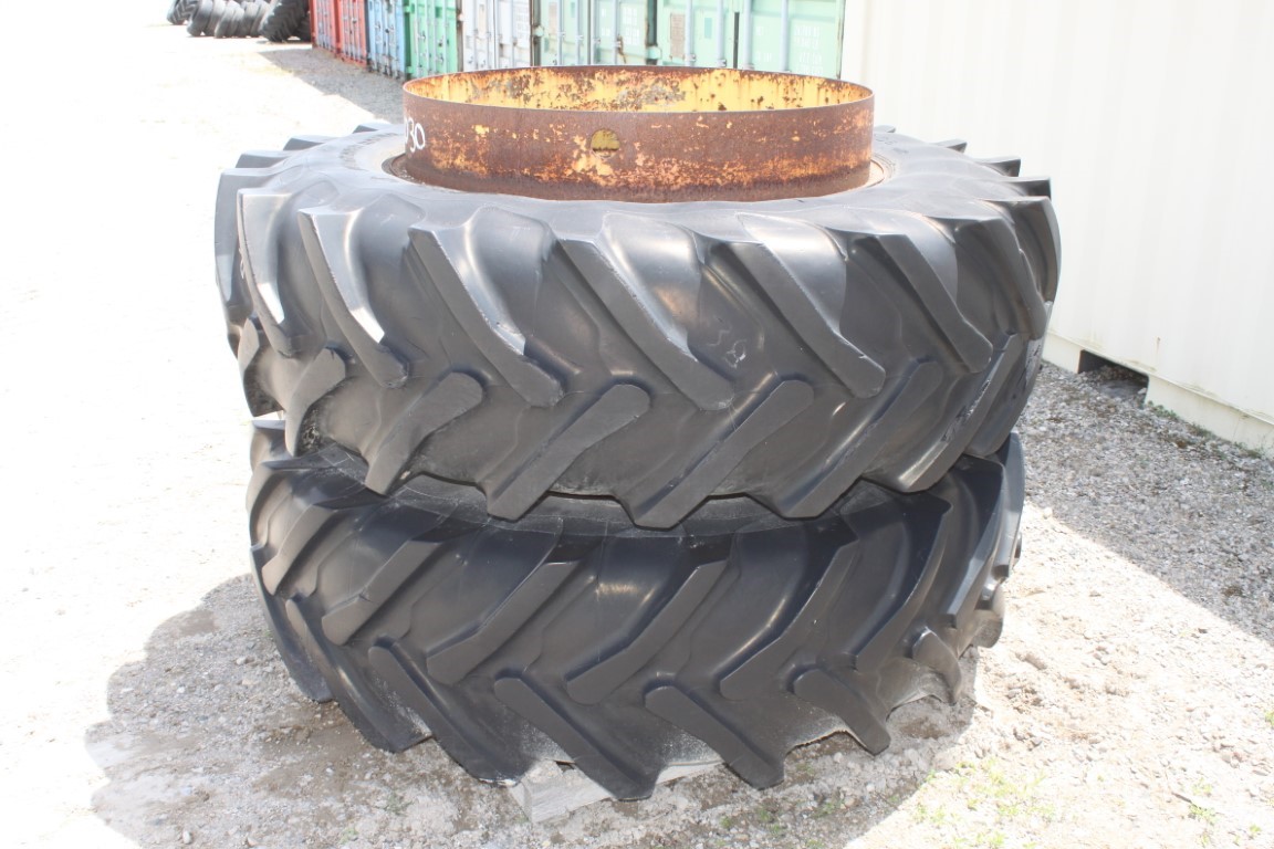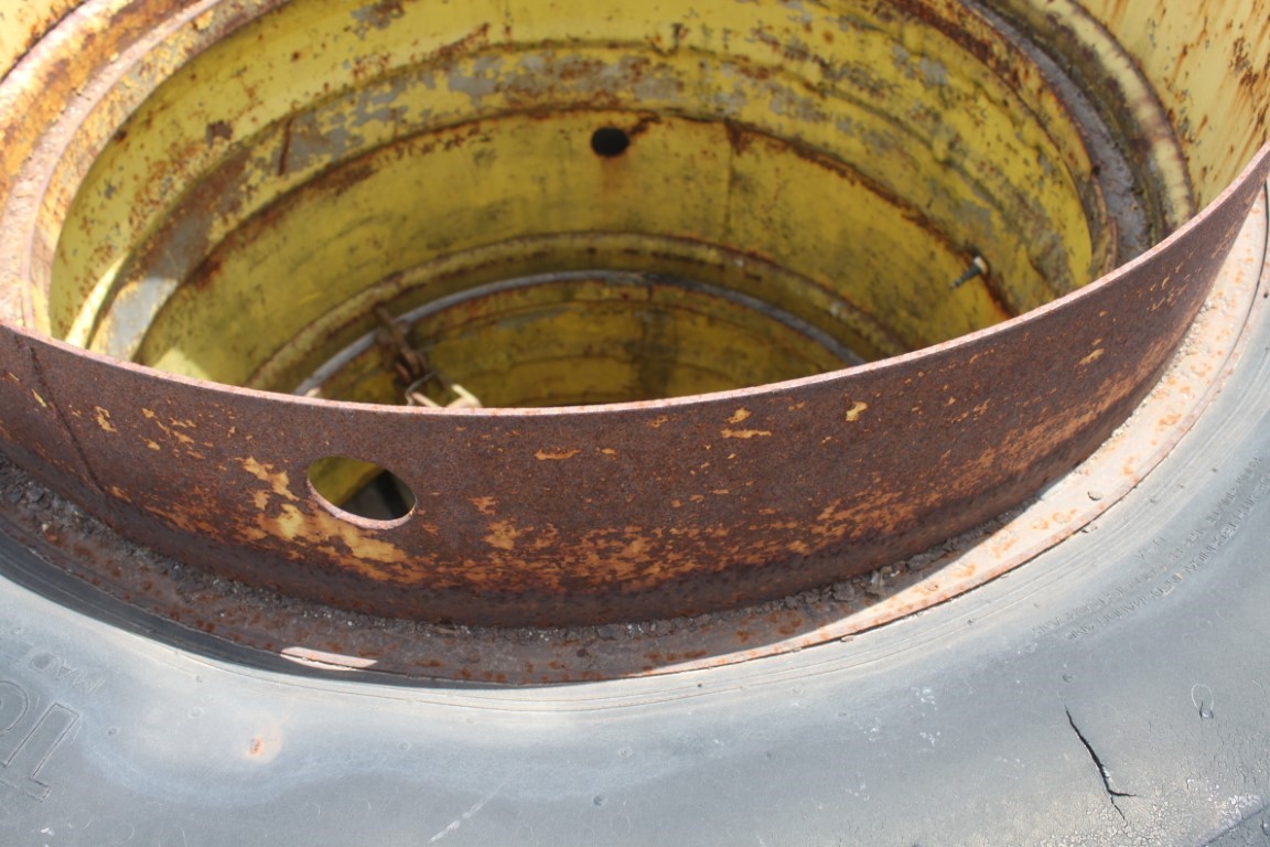 18.4R-38 Radial T-rail duals, 16″-38″ rims, 8″ band width, snap on center hub, yellow bolt circle