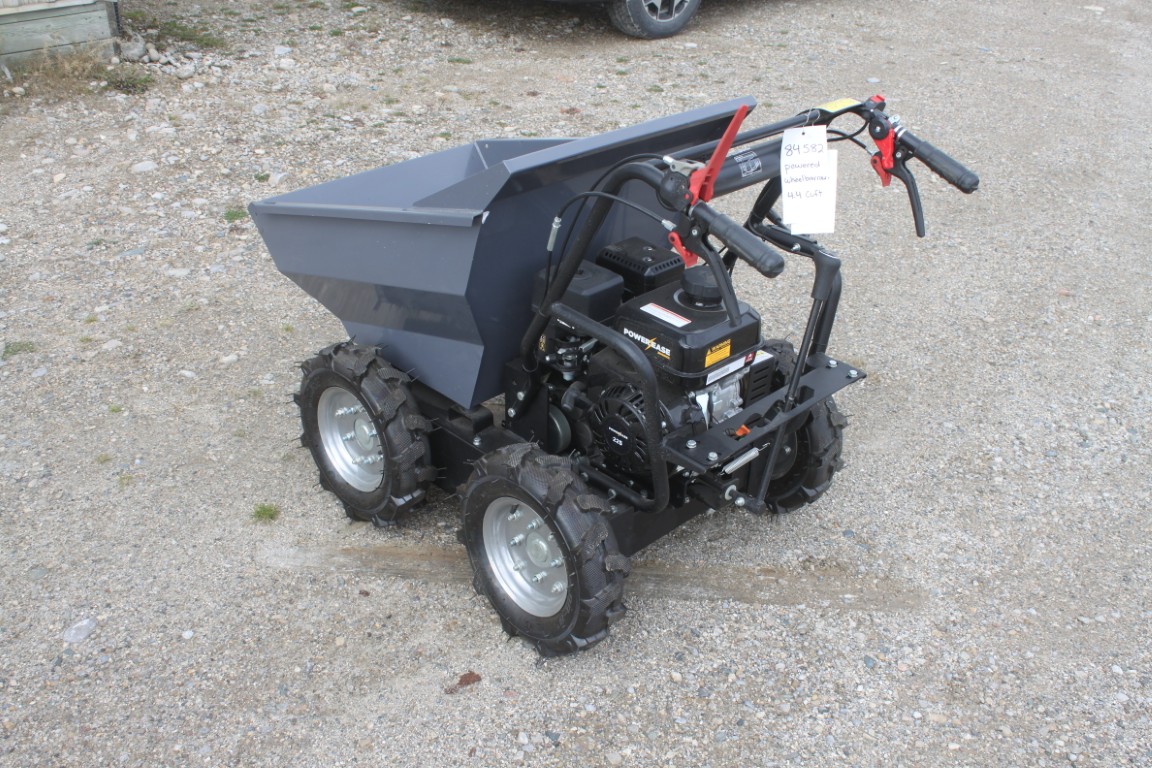 Model: 4.4 cu ft gas powered wheel barrow, 3 speed transmission