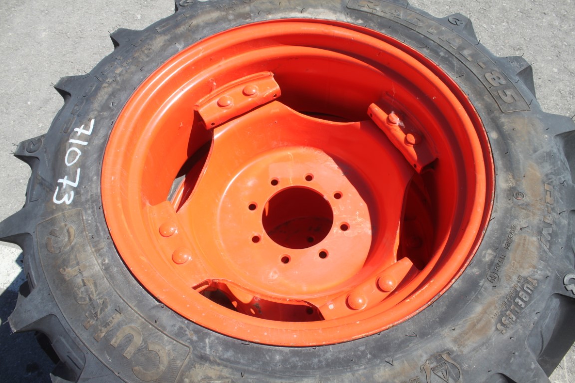 Cultor Pair of 280/85R24 tires on 8 bolt steel Kubota OEM rim, 100% tread, 6″pilot, 8″ bolt circle, orange