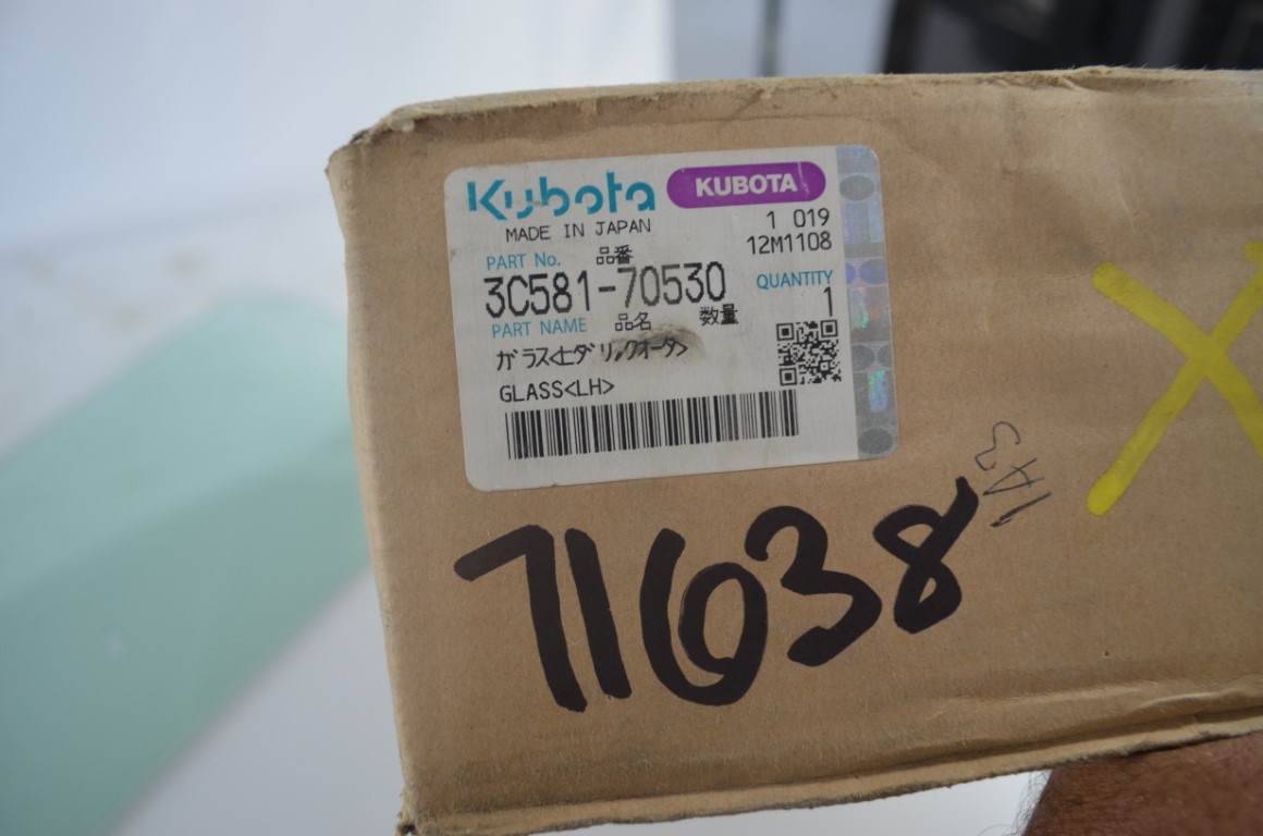 一 Kubota cab glass, part number 3C581-70530