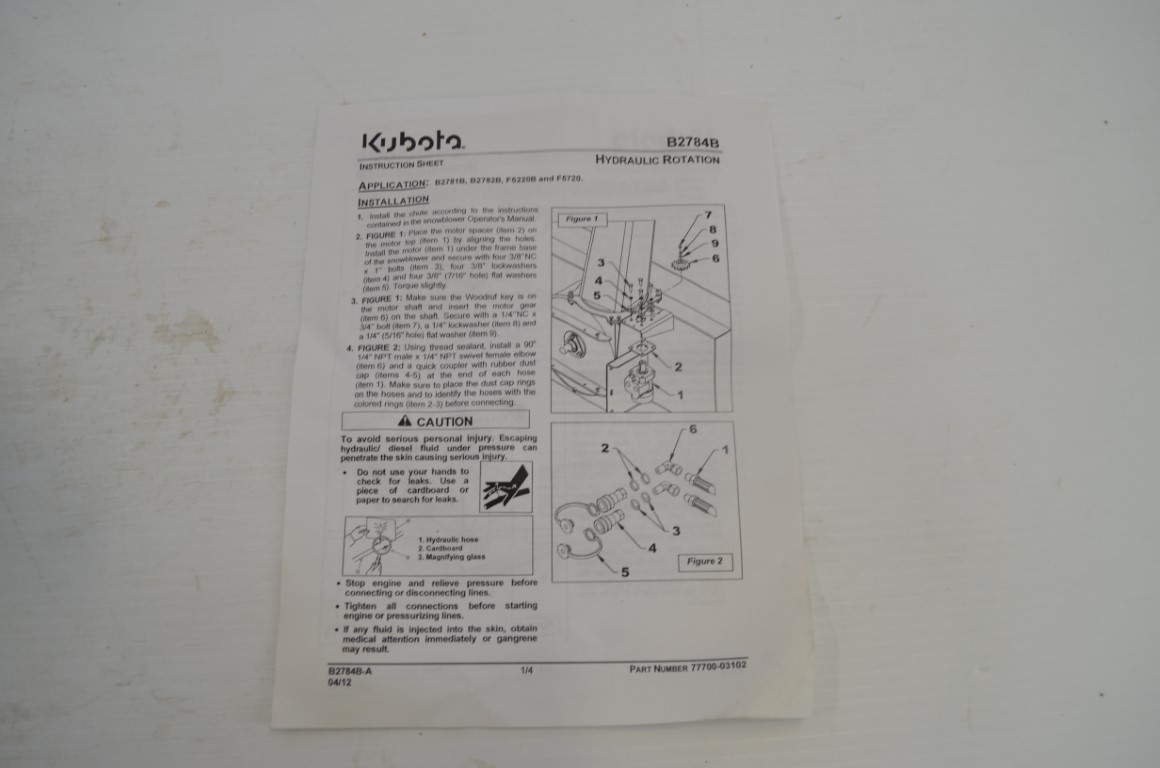Model: hydraulic hood rotation kit, to fit B2781B, B2782B, F5220B and F5720, part number B2784B