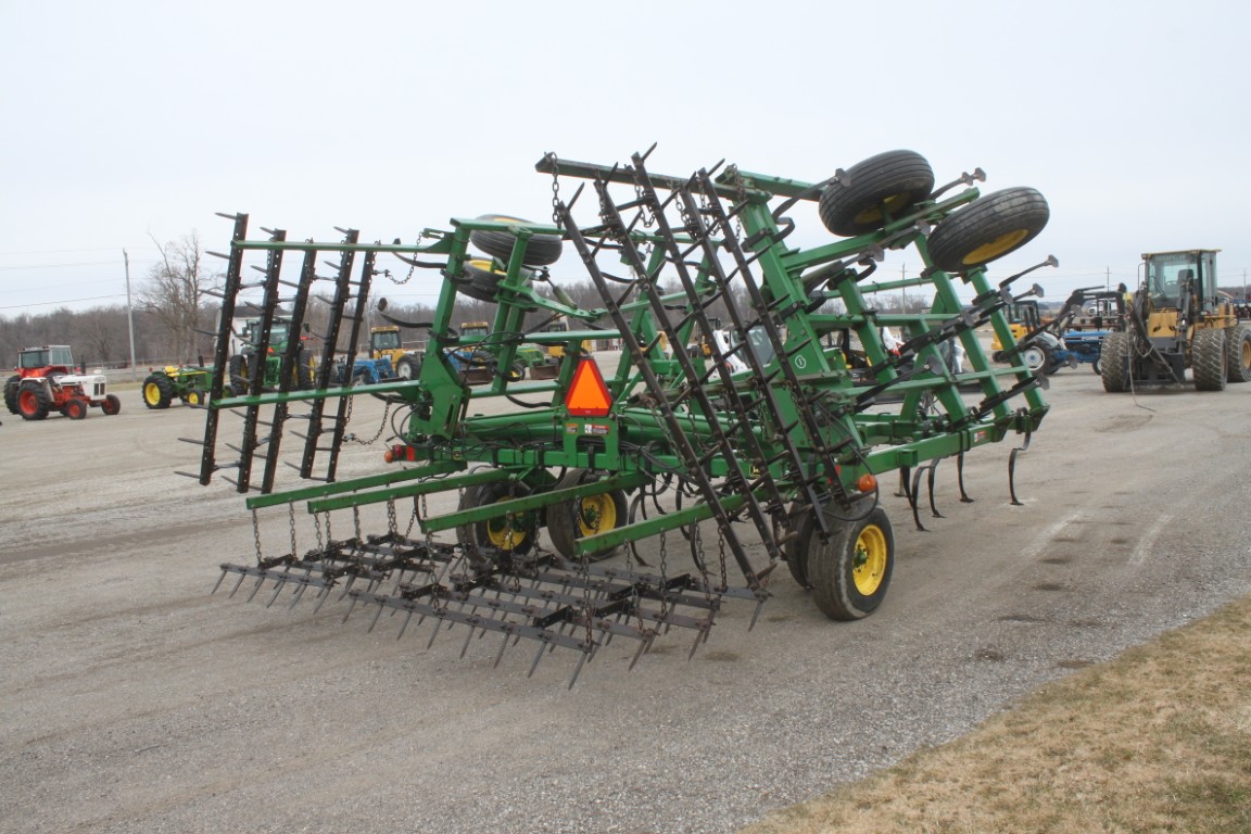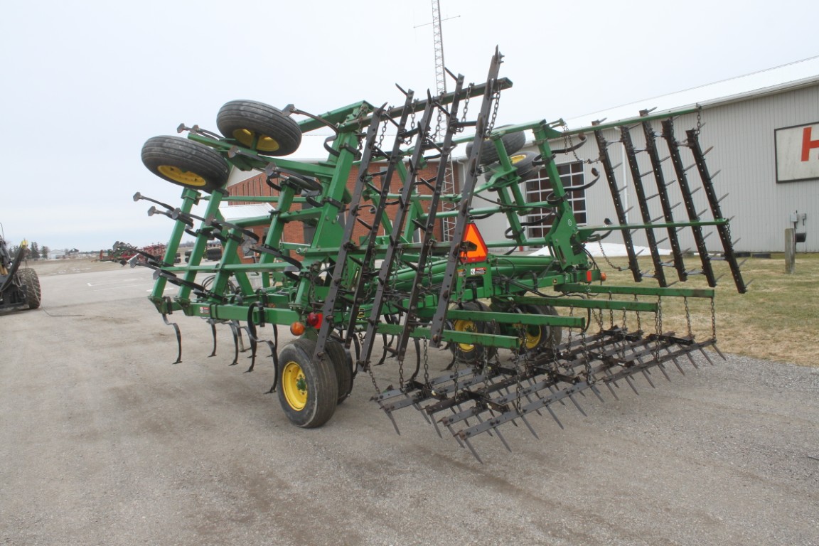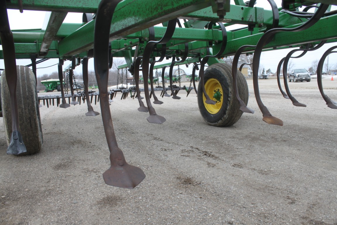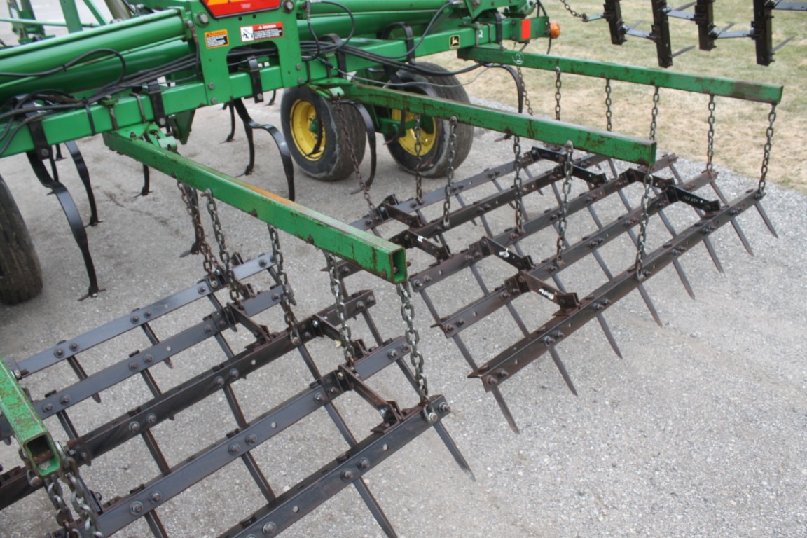 JD 980 24′ cultivator, 5 bar spike harrow, S-tine, walking tandem