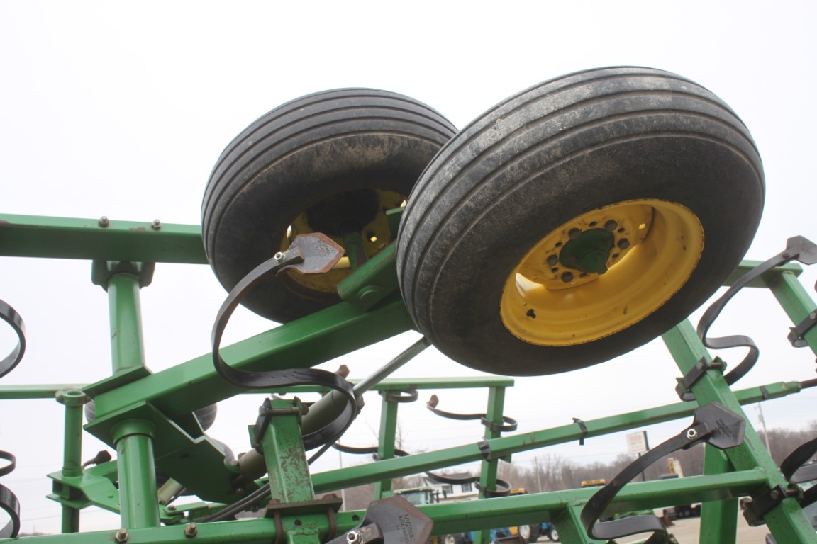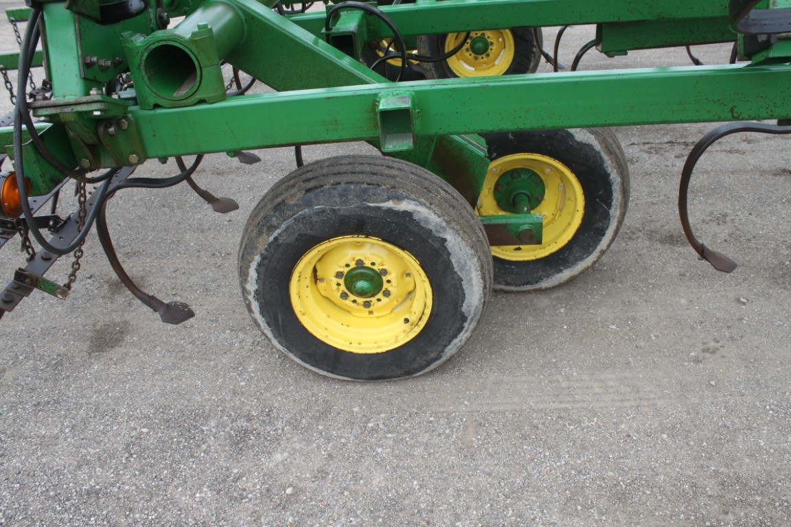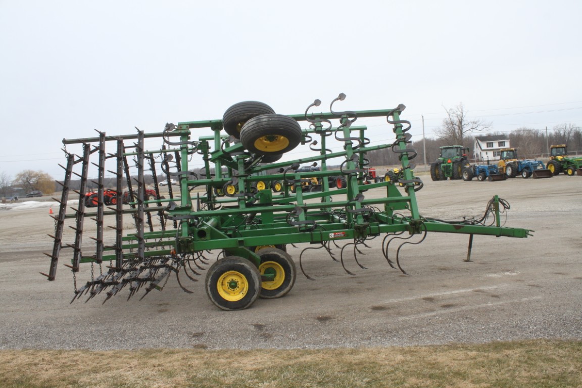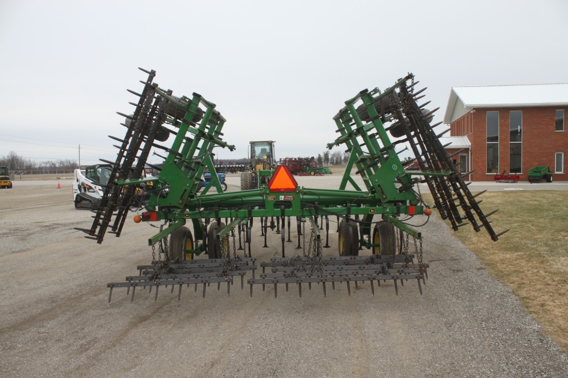 JD 980 24′ cultivator, 5 bar spike harrow, S-tine, walking tandem