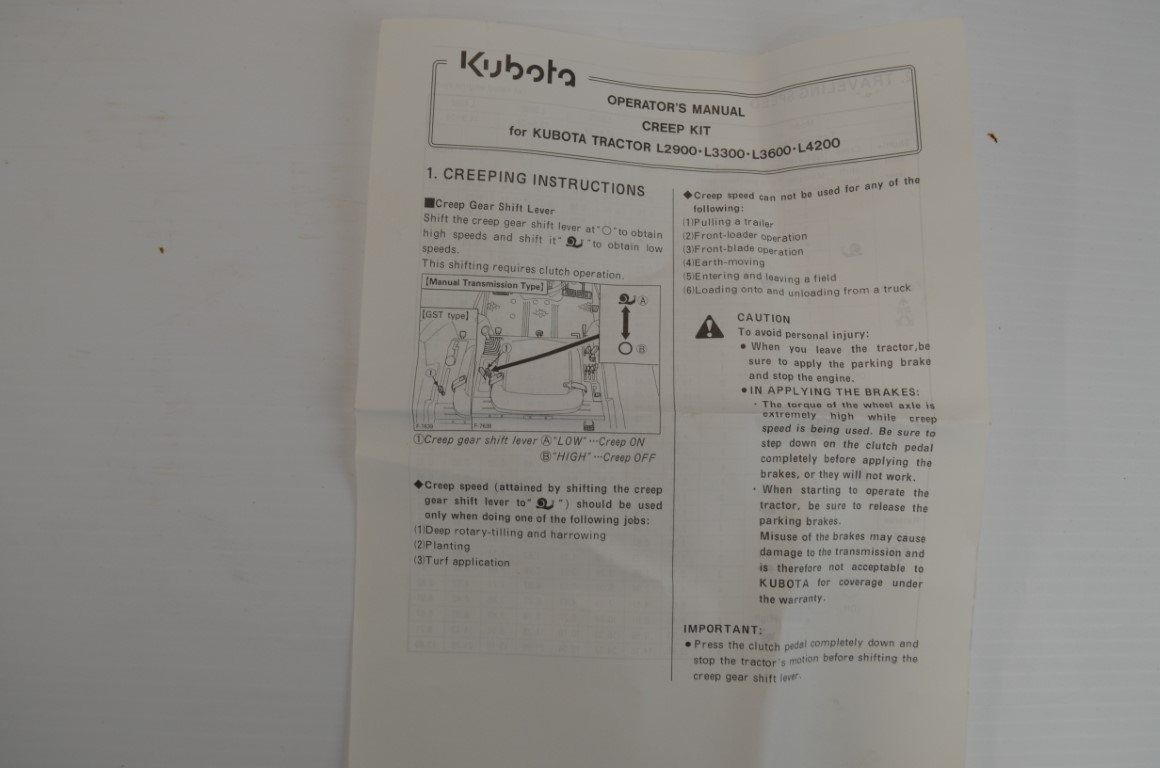一 Kubota creeper kit to fit L2900, L3300, L3600 and L4200, part number TA04098752