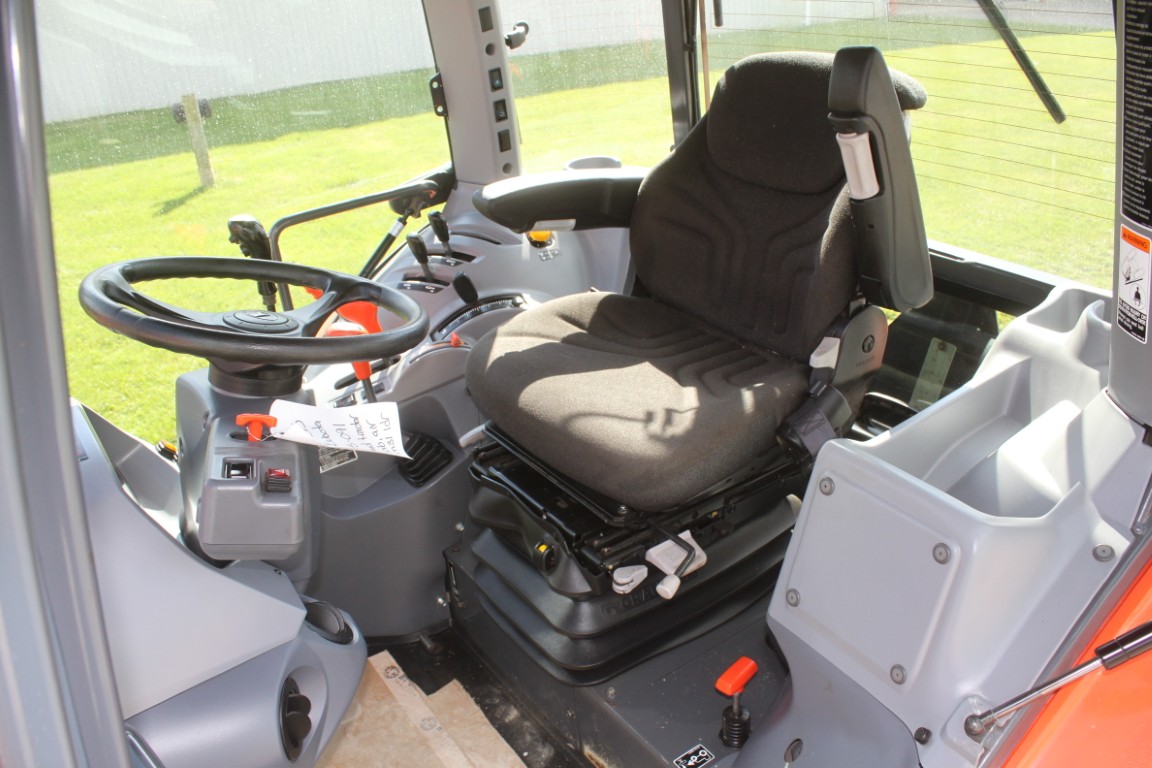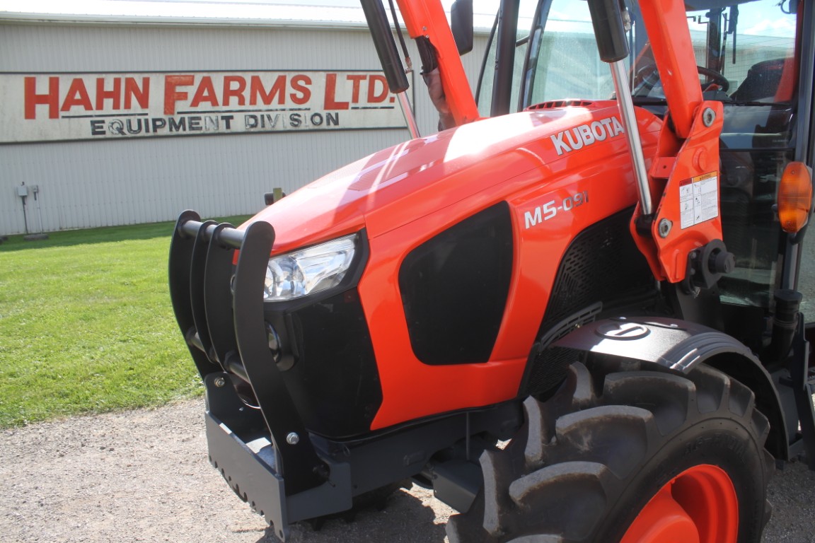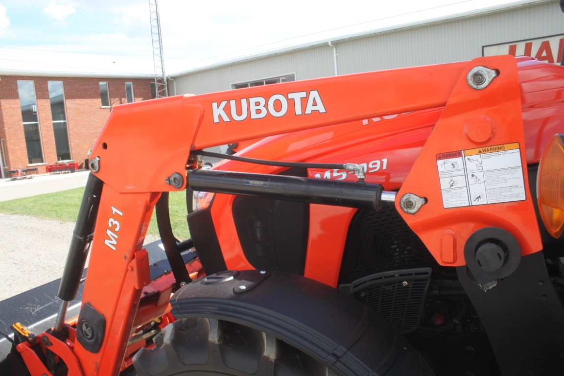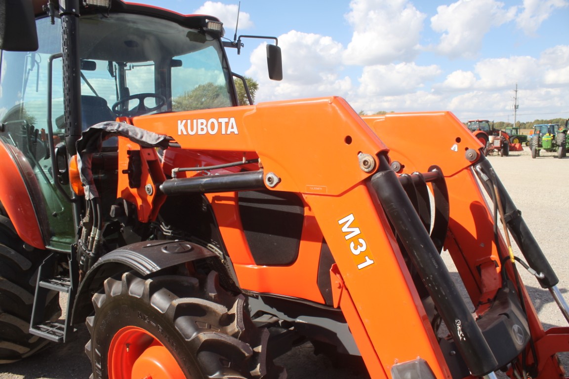 Kubota M5-091 4wd tractor, UltraGrand cab, air, 12×12 hydraulic shuttle, Kubota M31 loader, 2 remotes, 460/85R30, air seat, 2456 hours, made in Japan