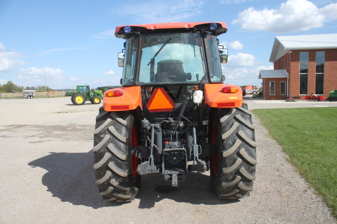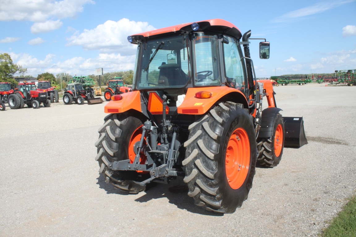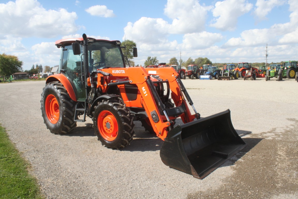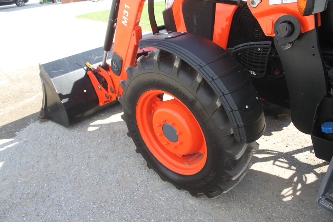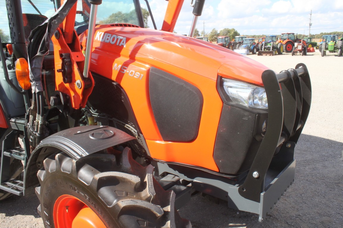 Kubota M5-091 4wd tractor, UltraGrand cab, air, 12×12 hydraulic shuttle, Kubota M31 loader, 2 remotes, 460/85R30, air seat, 2456 hours, made in Japan