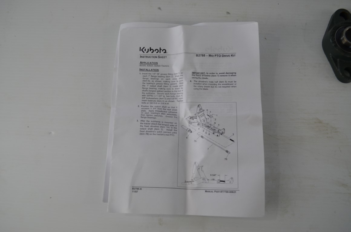 一 Kubota mid pto drive kit, to fit GL40 and GL60 tractor series, part number B2788