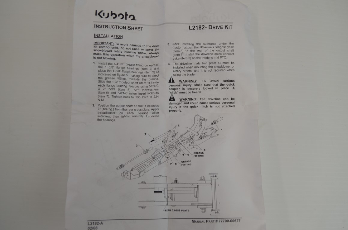 一 Kubota mid pto package, part number L2182