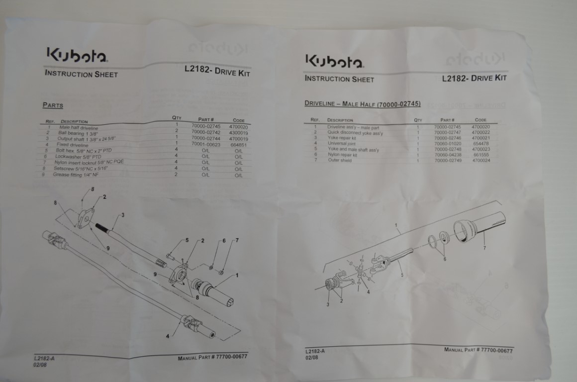 Home/Parts & Accessories/All Parts & Accessories, PTO/一 Kubota mid pto package, part number L2182