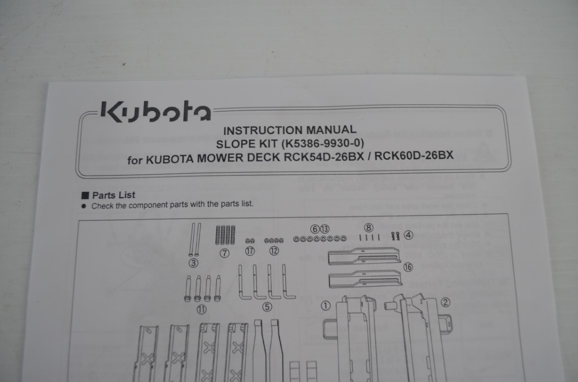 一 Kubota mower deck slope kit to fit RCK54D/RCK60D BX26 series mower decks (K5386-9930-0)
