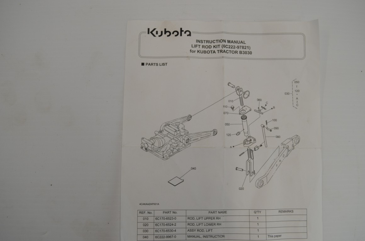 一 Kubota R2667, rachet type lift rod, fits B series, 6C222-97821