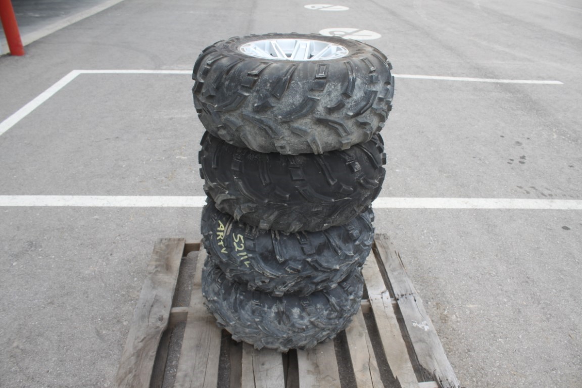 mag off road set of 4/ 25×10.00-12 tires on 4 bolt Kubota RTV rim, 100% tread