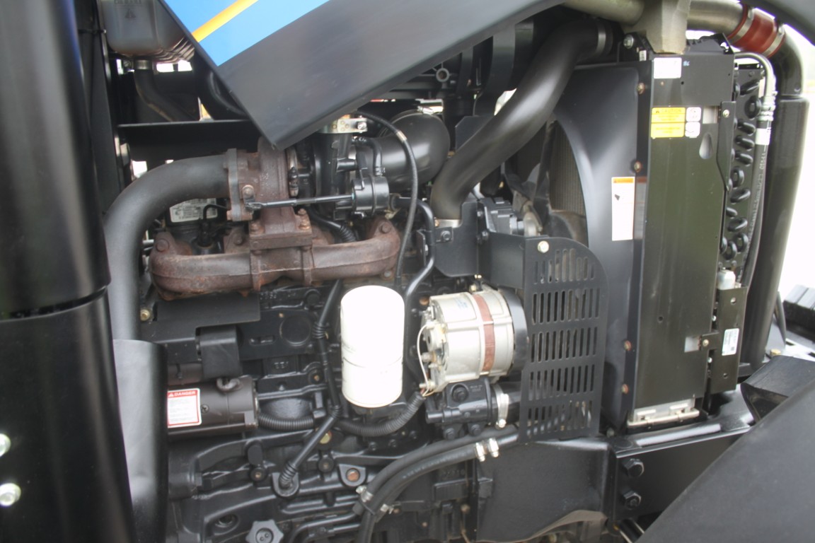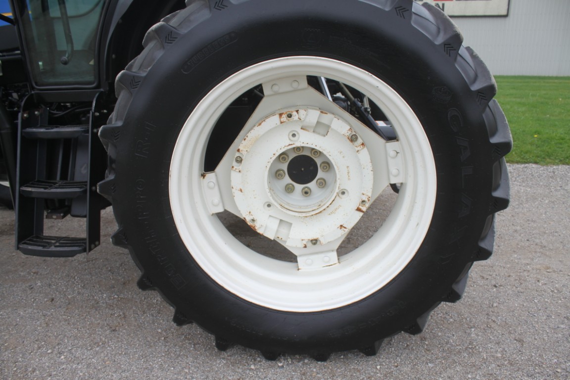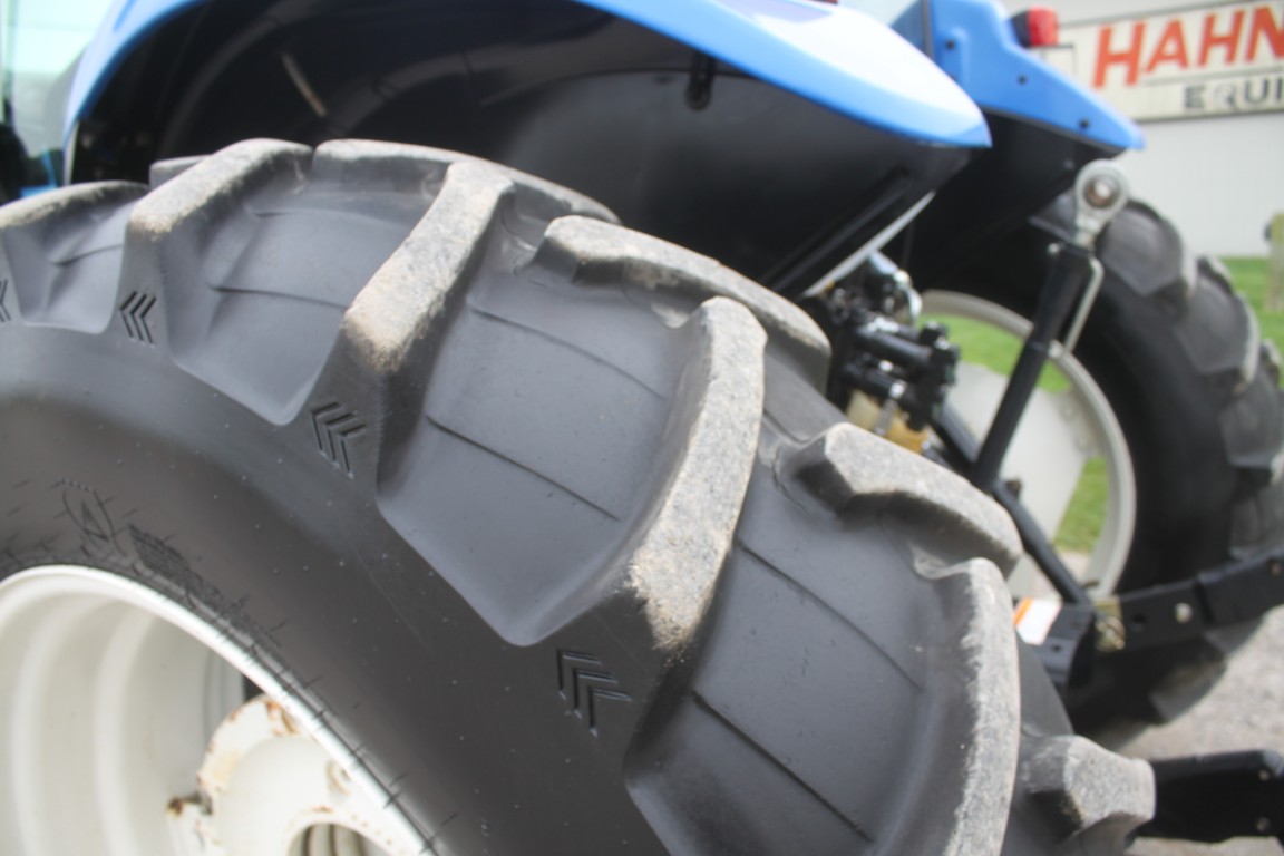 New Holland TS6.120 4wd tractor, cab, air, 16×16 with dual power, 2 remotes, 18.4×38, 1049 hours, tier III FPT engine, 3 wheel weights per side & 6 Ford front weights, 2014 model, made in Mexico