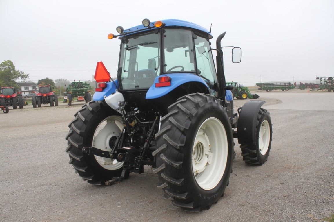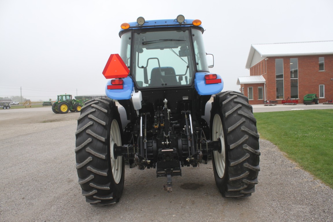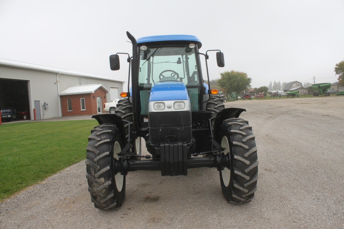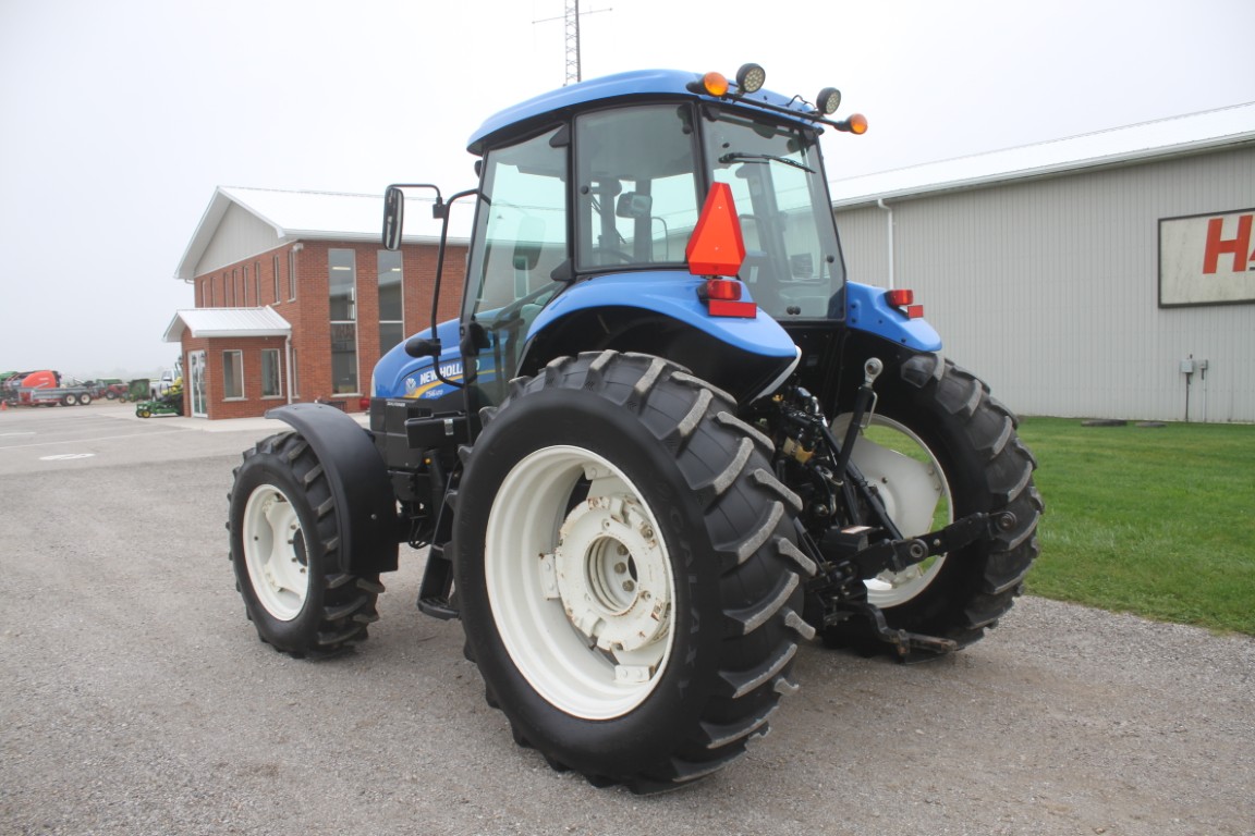New Holland TS6.120 4wd tractor, cab, air, 16×16 with dual power, 2 remotes, 18.4×38, 1049 hours, tier III FPT engine, 3 wheel weights per side & 6 Ford front weights, 2014 model, made in Mexico