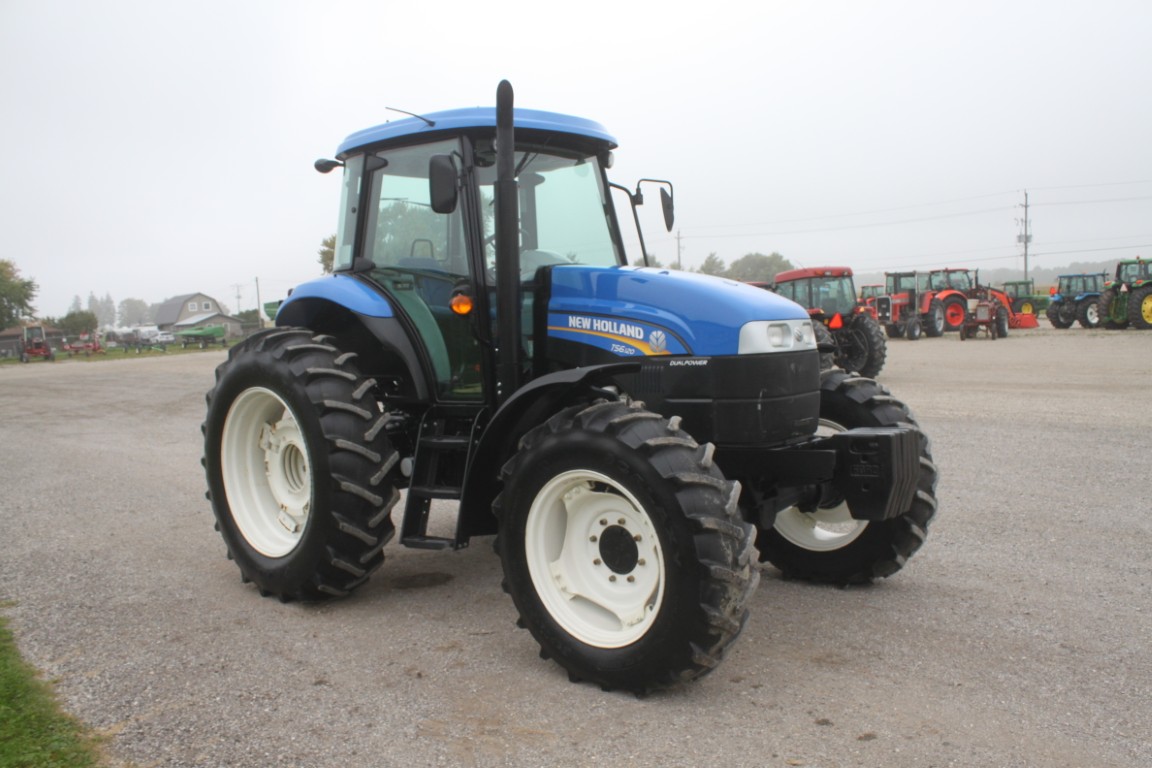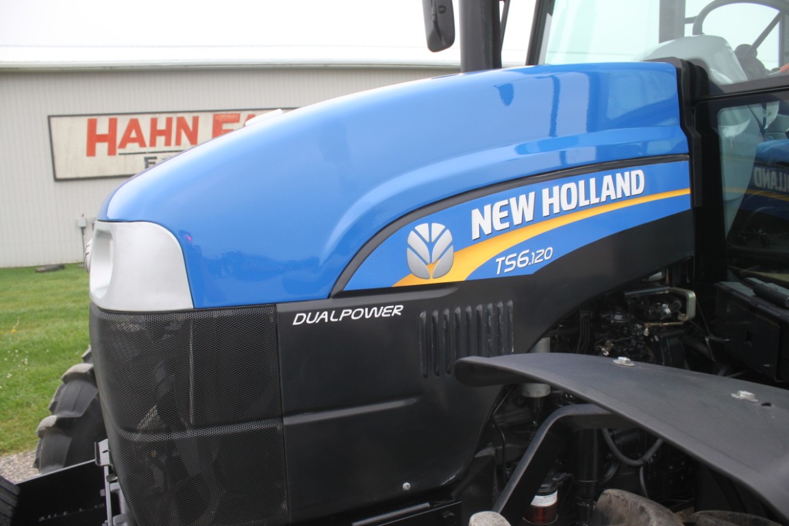Model: TS6.120 4wd tractor, cab, air, 16x16 with dual power, 2 remotes, 18.4x38, 1049 hours, tier III FPT engine, 3 wheel weights per side & 6 Ford front weights, 2014 model, made in Mexico