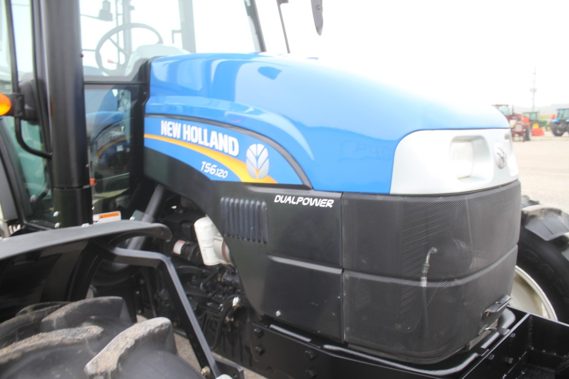 Home/Agricultural/Tractors/Tractors/New Holland TS6.120 4wd tractor, cab, air, 16×16 with dual power, 2 remotes, 18.4×38, 1049 hours, tier III FPT engine, 3 wheel weights per side & 6 Ford front weights, 2014 model, made in Mexico