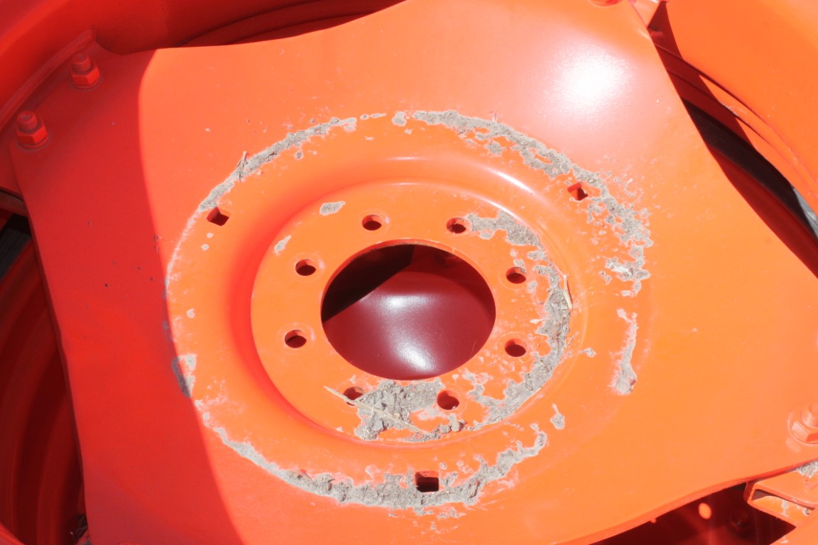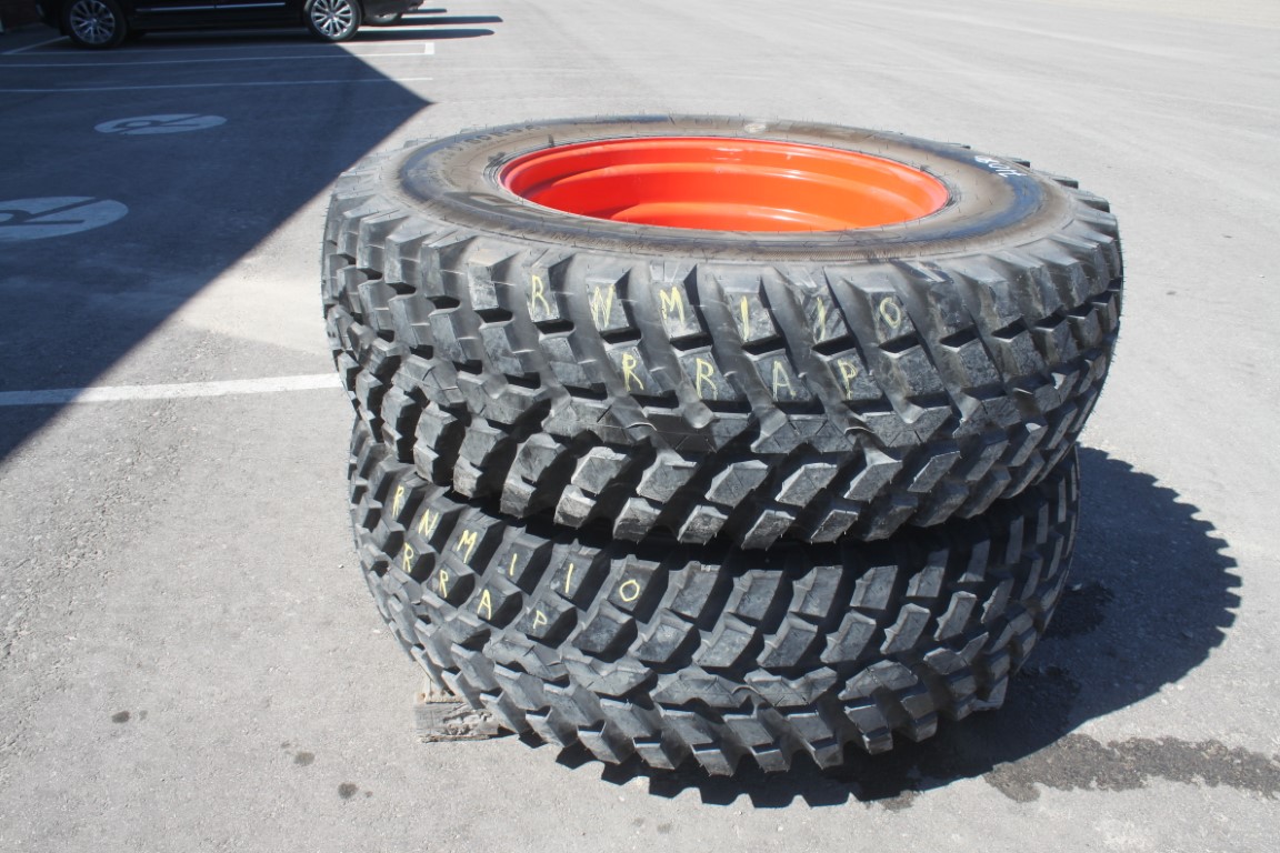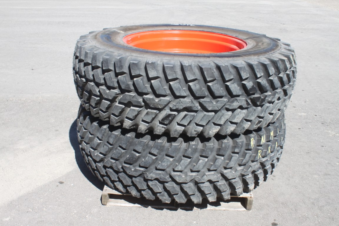 Nokian Pair of 480/80R34 tires on 8 bolt steel Kubota OEM rim, 100% tread, 6″pilot, 8″ bolt circle, orange