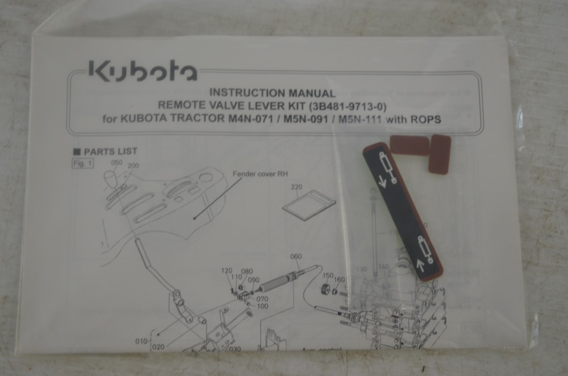 一 Kubota remote valve lever kit fits M5, part number M8232 (3B481-9713-0)