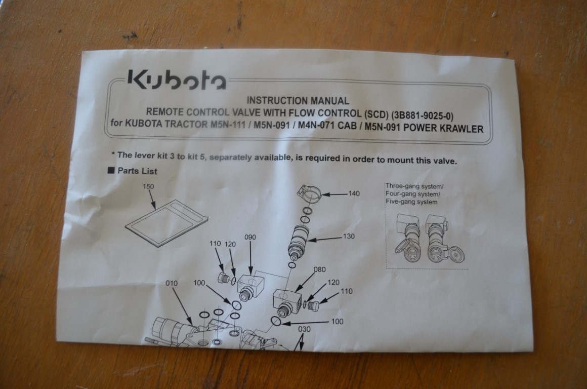 Model: scd valve with flow control for Kubota tractor M5N-111 / M5N-091 / M4N-071 cab / /M5N-091 power krawler, part number M8136