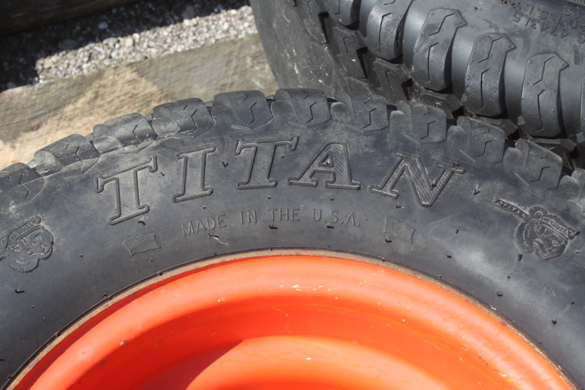 Titan Set of 4 – 2-29×12.50-15 turf tires and 2-21.5-16.1 turf tires, from retiring sod farmer
