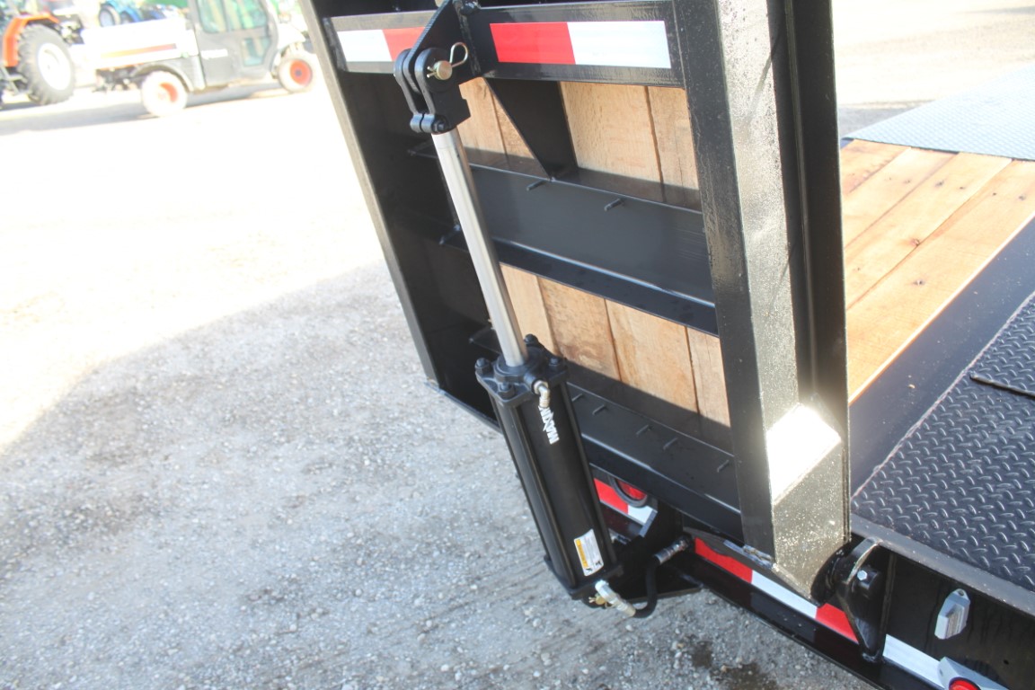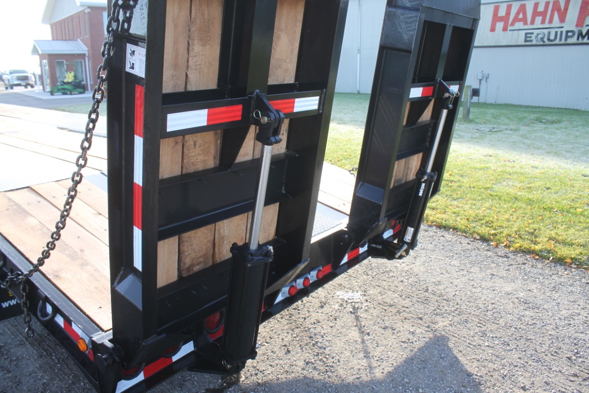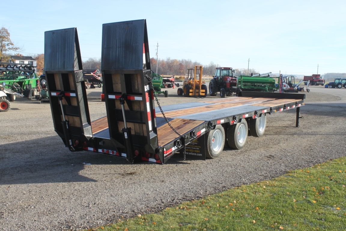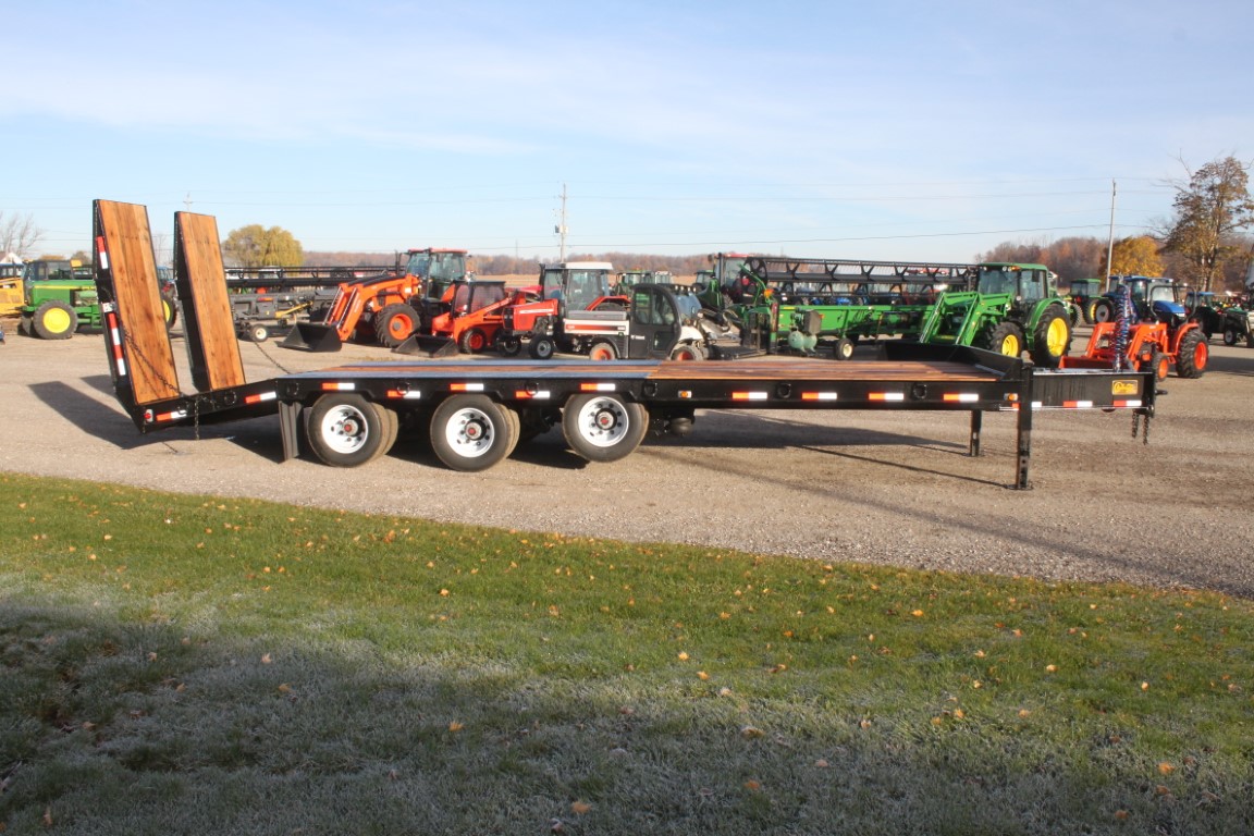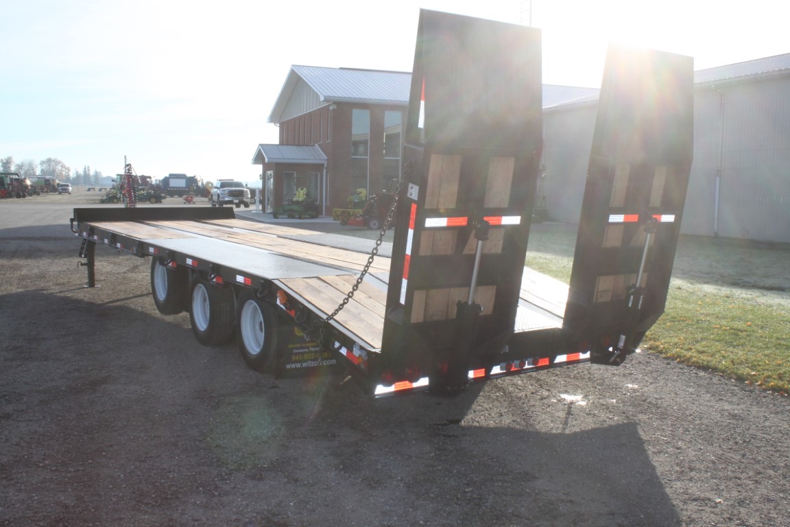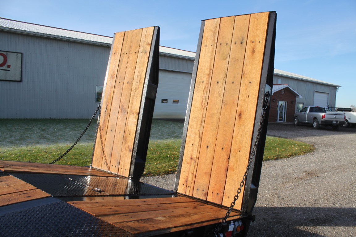 23′ main deck + 5′ beavertail + 7′ hydraulic lift ramps.Air brakes, front air lift axle.