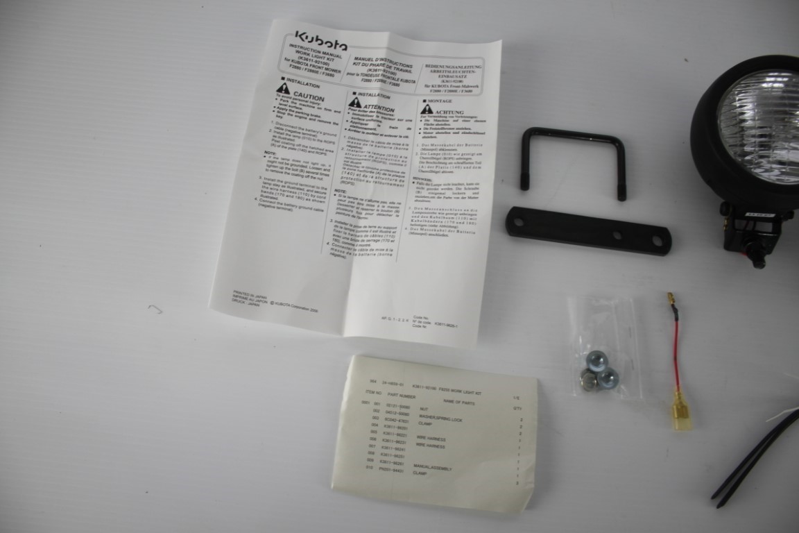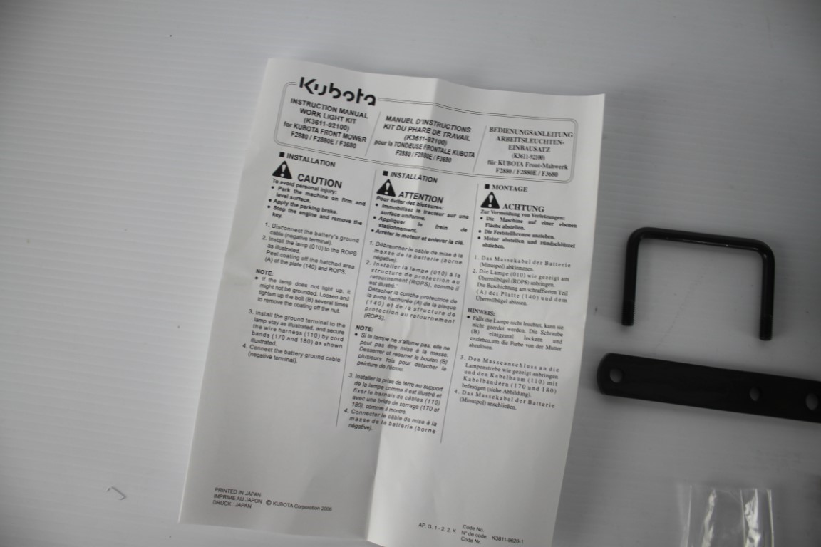 Model: work light kit (K3611-92100), part number F8255, for front mount mower (F2880 / F2880E / F3680)
